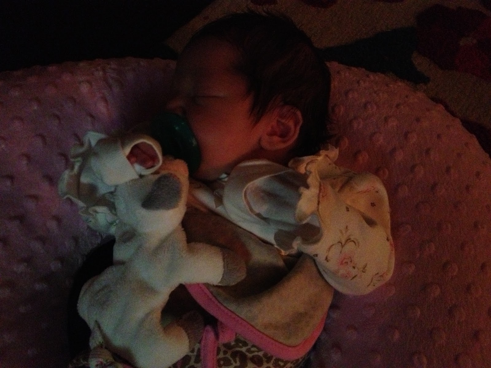 She makes the cutest, softest little mumbles in her sleep. John says between my snoring and her mumbles, he's never going to get good sleep. Not mention, she is a loud gulper. There's no denying she is getting a belly full of milk!