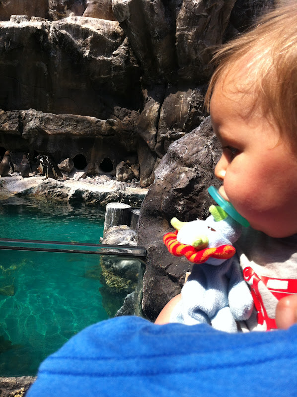 Even though Rudy was well-rested from a 3-hour nap earlier that morning, the heat really wore him out! He was happy when Dad was holding him and took little interest in the animals, except for the dolphins and polar bear that were active and swimming around (I don't think he knew what to look at with the others)