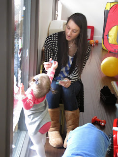 Two of Avery's favorite things... her car and pulling window clings off of the windows...